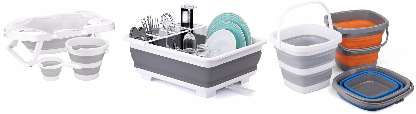 - Складные изделия: ведра, детская ванночка, корзина для белья, сушилка для посуды, сито
